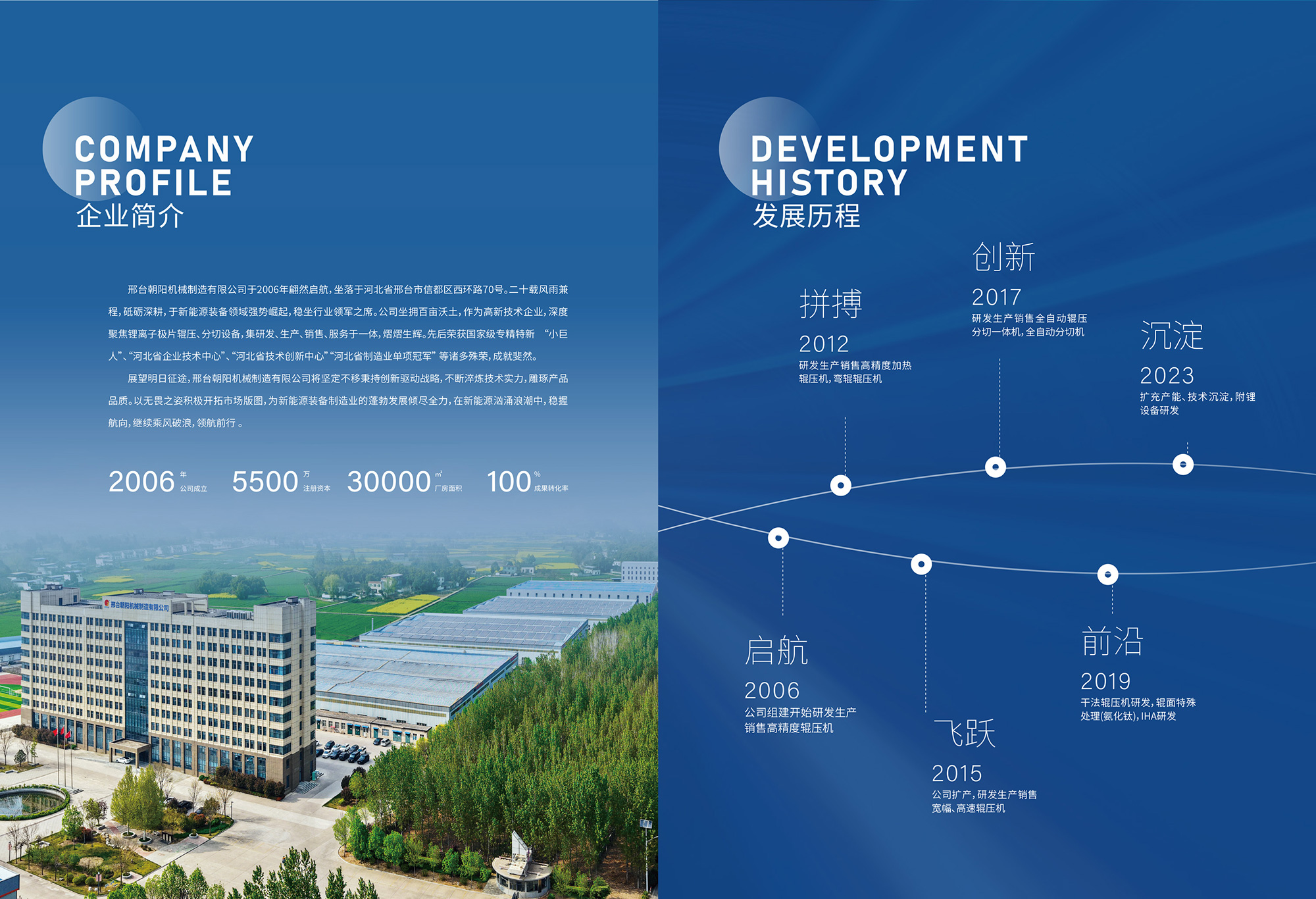 邢臺(tái)朝陽機(jī)械制造有限公司是新能源裝備領(lǐng)域的璀璨之星,位于河北省邢臺(tái)市信都區(qū)會(huì)寧鎮(zhèn)(邢臺(tái)會(huì)寧綜合物流聚集地) 70 號,自2006 年成立以來,歷經(jīng) 20 年砥礪奮進(jìn),已成長為新能源裝備領(lǐng)域的行業(yè)領(lǐng)軍者。公司占地 100 余畝,是集鋰離子電池極片... [更多>>]